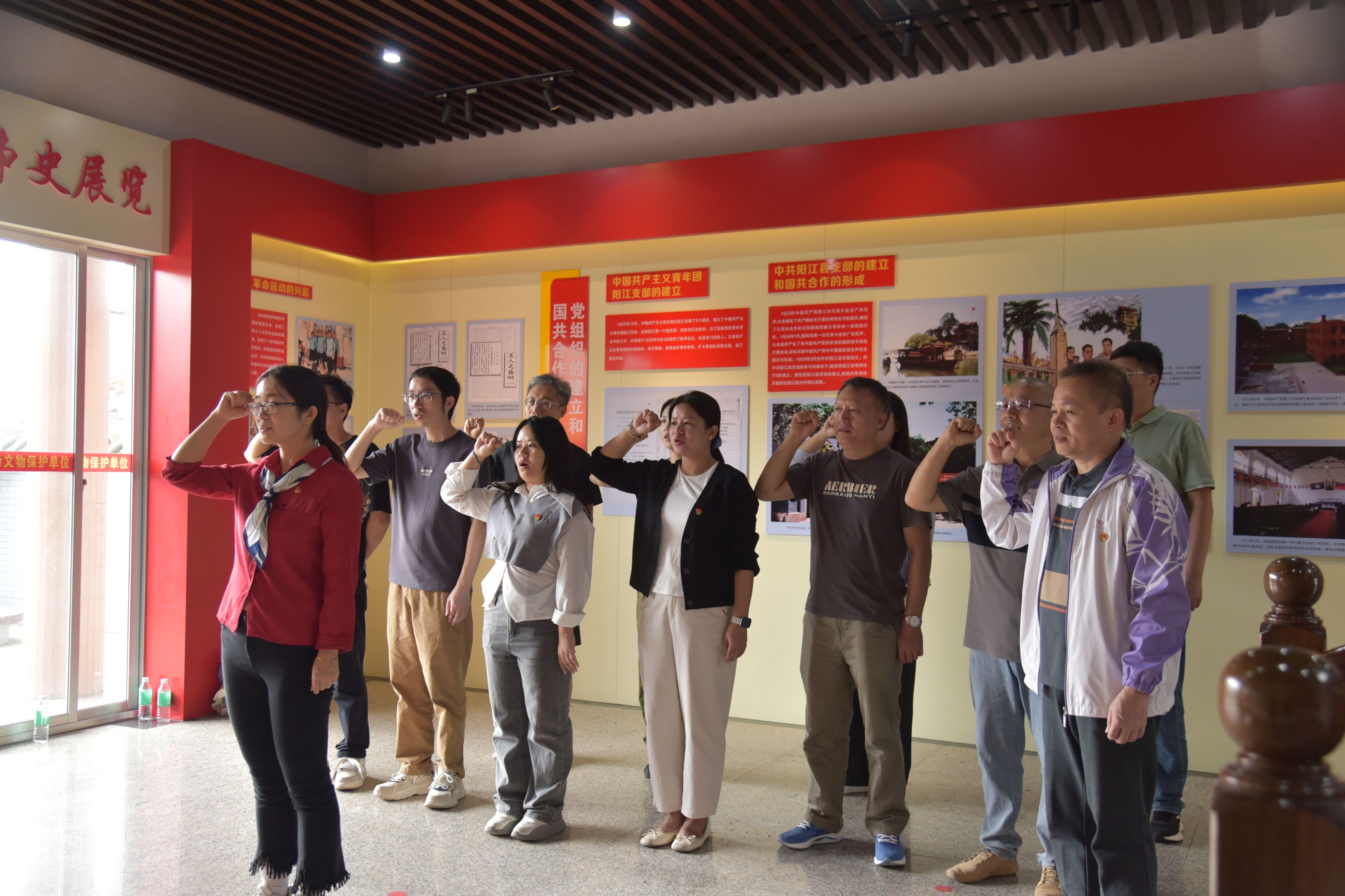 活动首站聚焦阳江文昌宫。作为当地承载革命记忆的红色阵地,文昌宫记录着阳江地区革命先辈的奋斗历程。在文昌宫工作人员的引导下,党员们沿着历史脉络,仔细参观馆内陈列的革命文物、历史图片与文字史料,认真聆听先辈们在艰苦岁月中投身革命、服务群众的感人事迹,深刻体会红色政权的来之不易。随后,在党支部书记陈莲芬的带领下,全体党员高举右拳、庄严宣誓,重温入党时的铮铮誓言。激昂的誓词不仅是对入党初心的再次叩问,更凝聚起赓续红色血脉、勇担使命的坚定信念。