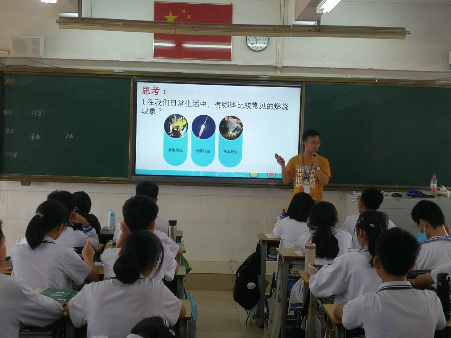 2020年10月12日上午,304永利集团实习指导老师吴文胜深入肇庆市第一中学初三化学课堂,见证了2017级化学专业实习生游柔珊和李志安两位同学的首次课堂表现。