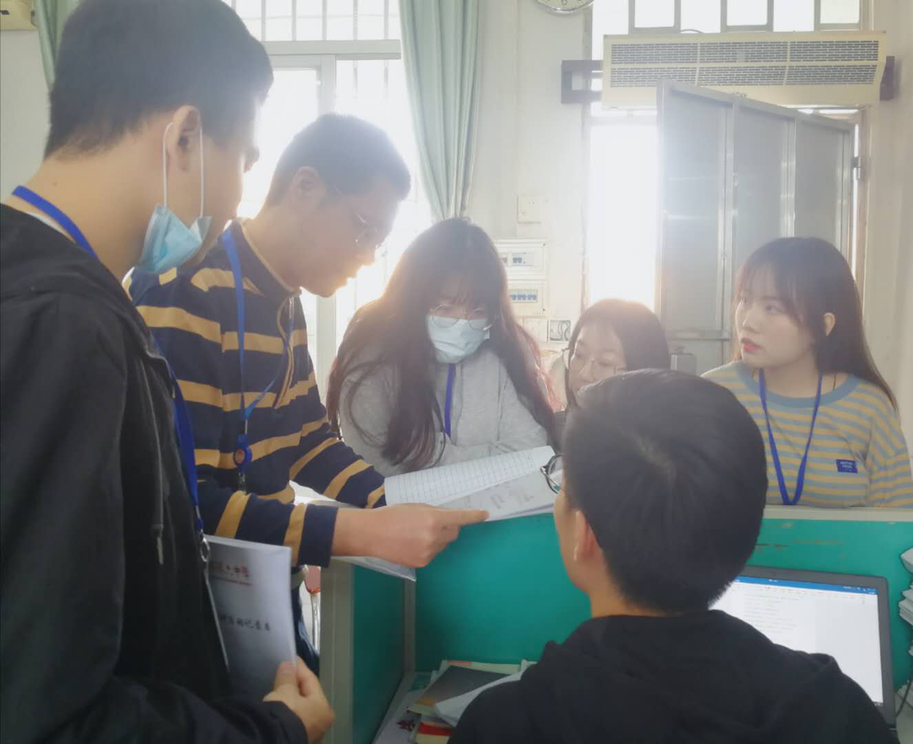 2020年10月10日,304永利集团端州实习区带队指导老师吴文胜莅临六中查看实习生的实习情况。