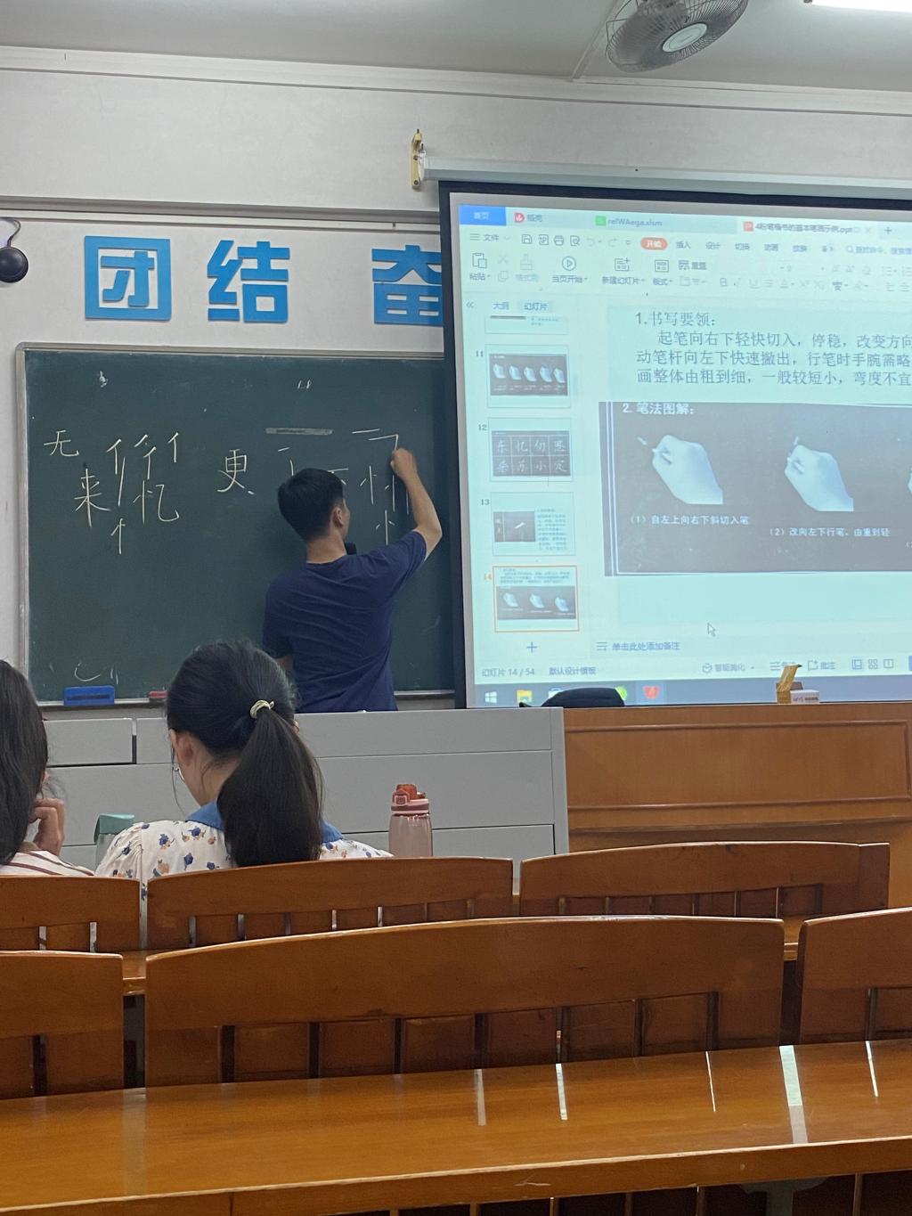 竞赛旨在以赛促练,在全校营造重视教师技能、苦练“两字一画”的氛围,切实提高师范生的基本教学技能。公司领导高度重视,副经理吴燕妮教授拟定方案,由严锡秋老师对师范生进行训练及指导,最后选派粉笔字组、钢笔字组和简笔画组参赛员工各13人次参加公司师范生“两字一画”大赛。