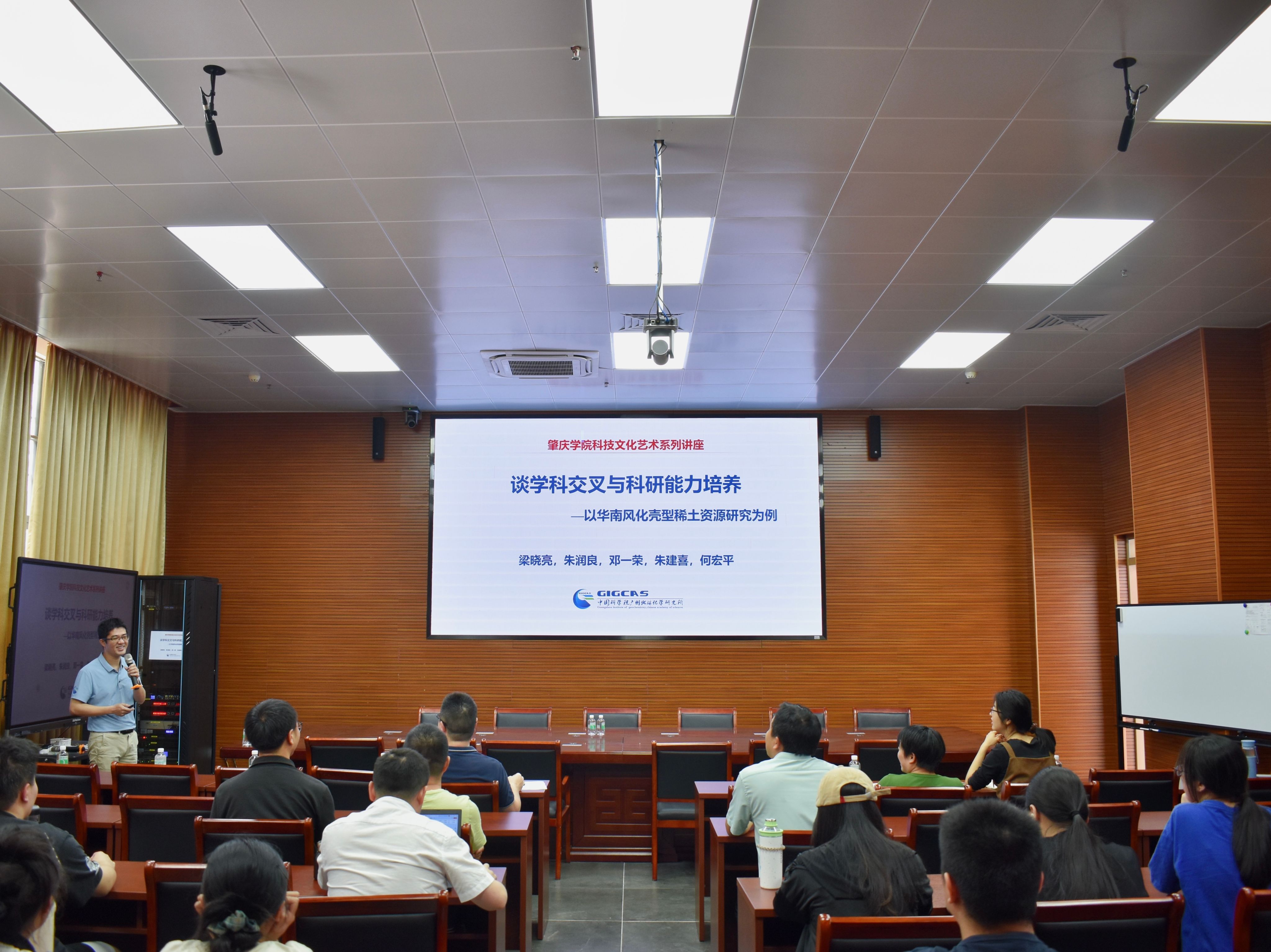 梁晓亮研究员以华南稀土资源研究为切入点,深度解析学科交叉创新与科研能力培养路径。讲座中,梁晓亮研究员介绍了什么是稀土并强调稀土在科学研究乃至国际上的重要地位。接着讲述了稀土资源的勘探、开发与环境治理涉及地质学、环境科学、微生物学、化学工程等多学科深度融合。从华南稀土矿床到碳中和前沿,学科交叉已成为破解复杂问题、培养创新人才的核心引擎。随着我国高校“跨界搭桥”培养模式的深化与稀土绿色技术的迭代,未来有望在全球战略资源竞争中占据科技制高点,为可持续发展提供“中国智慧”。随后,现场教师与梁晓亮研究员展开了学术探讨,并就学科交叉等议题展开了深度交流。本次讲座既是战略性矿产资源研究的学术前沿报告,更是青年学者成长的示范课堂。