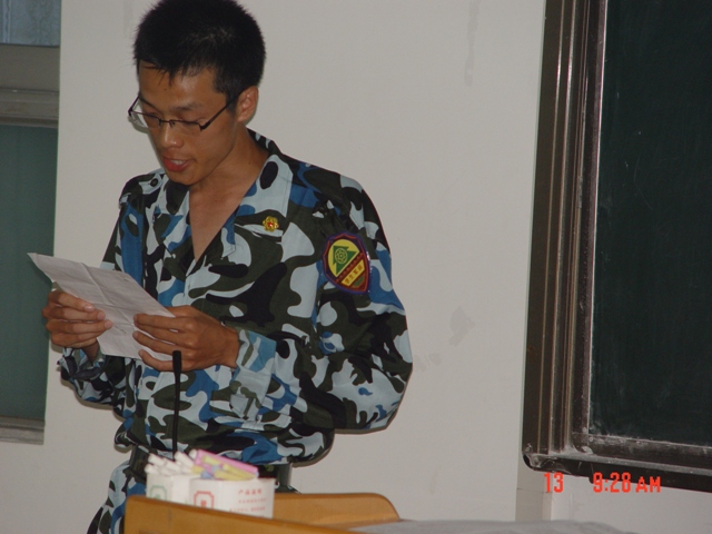 07环境班黄亚飞同学代表全体新生宣读文明承诺书