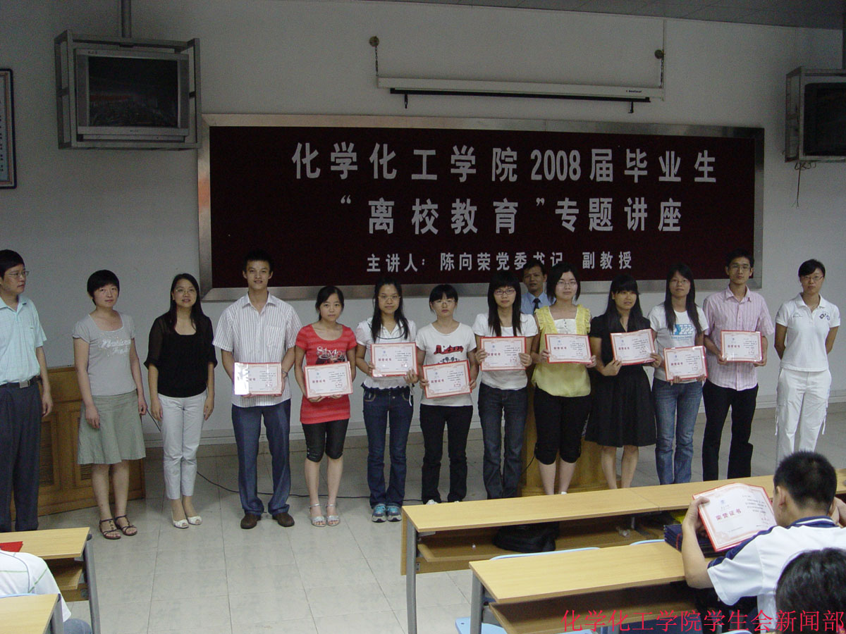 在此,祝福即将走出校园,迈进社会的师兄师姐们:愿你们在新的工作岗位上像金子一样发出夺目的光芒,在未来的每一天都拥有蓬勃的激情,雄壮的豪情,执着的热情,甜美的爱情,愉快的心情!