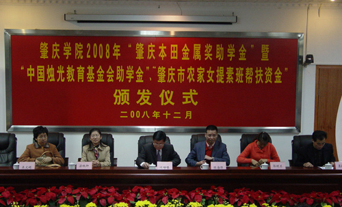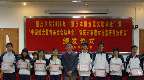 本网讯(记者 张丹华)12月10日下午,公司2008年“肇庆本田金属奖助学金”暨“中国烛光育基金会助学金”“肇庆农家女提素班帮扶资金”颁发仪式在公司行政楼第二会议室隆重举行。公司党委副书记叶峥嵘,肇庆市妇联副主席吴文娟等领导出席。此次奖助学金的发放仪式,公司共有四人获奖助学金。