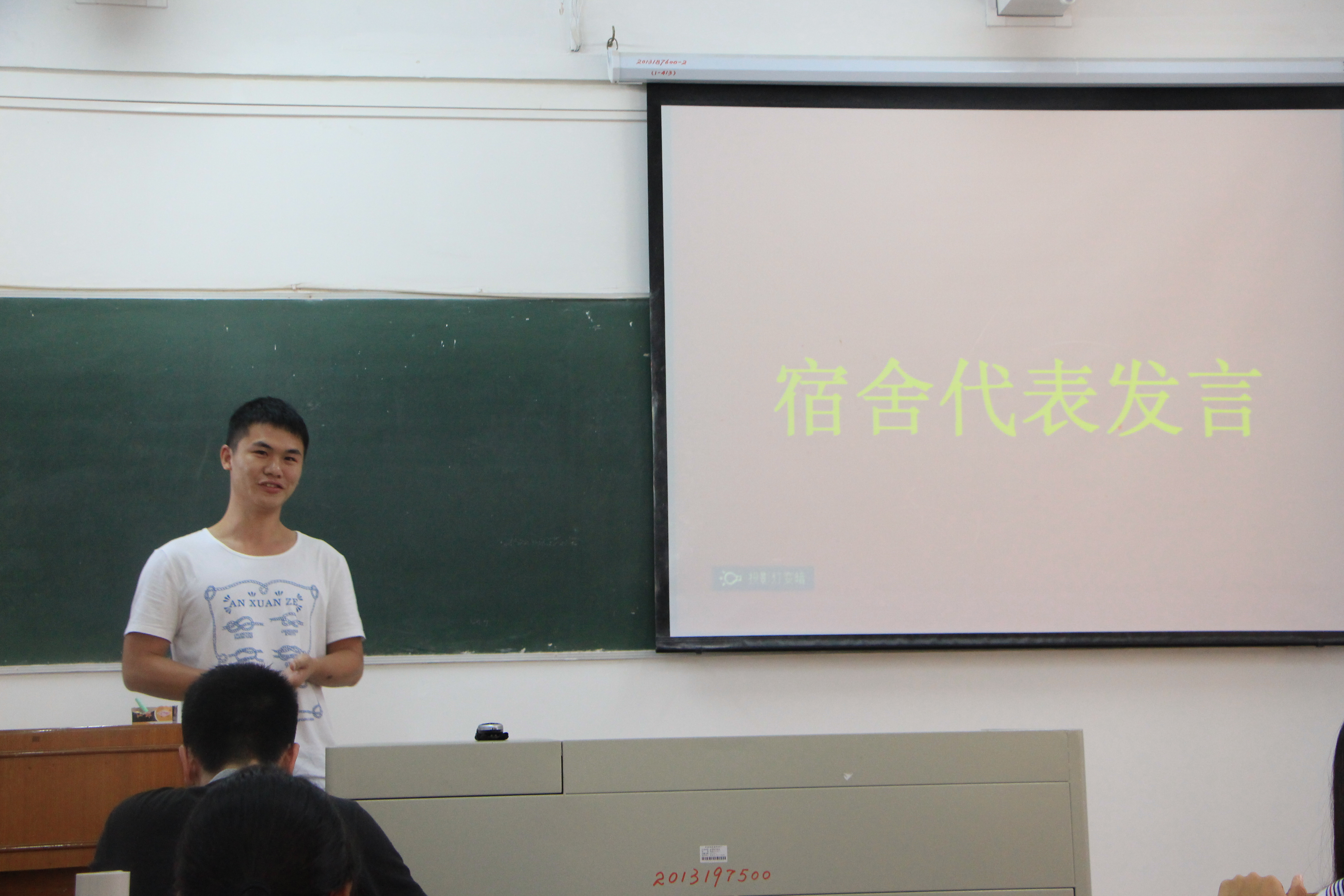 陆永恒、黄晓萍同学以及各宿舍代表上台分享了自身的学习经验以及未来的职业规划。李进华老师总结了13环境工程班这两年的成绩和不足,分享了担任班主任的感受,鼓励同学们把大学最美好的青春时光用于学习,为将来的发展奠定坚实的基础。