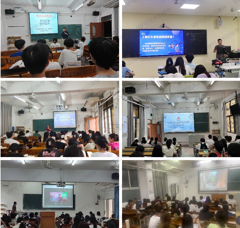 各班级班主任老师主要围绕诈骗危害、行骗手段、识别方法、应对策略等内容,通过视频播放、小组讨论等方式,展示了电信诈骗的典型案例,揭露了犯罪分子的惯用伎俩,并详细介绍了防范和处置各种诈骗的方法。