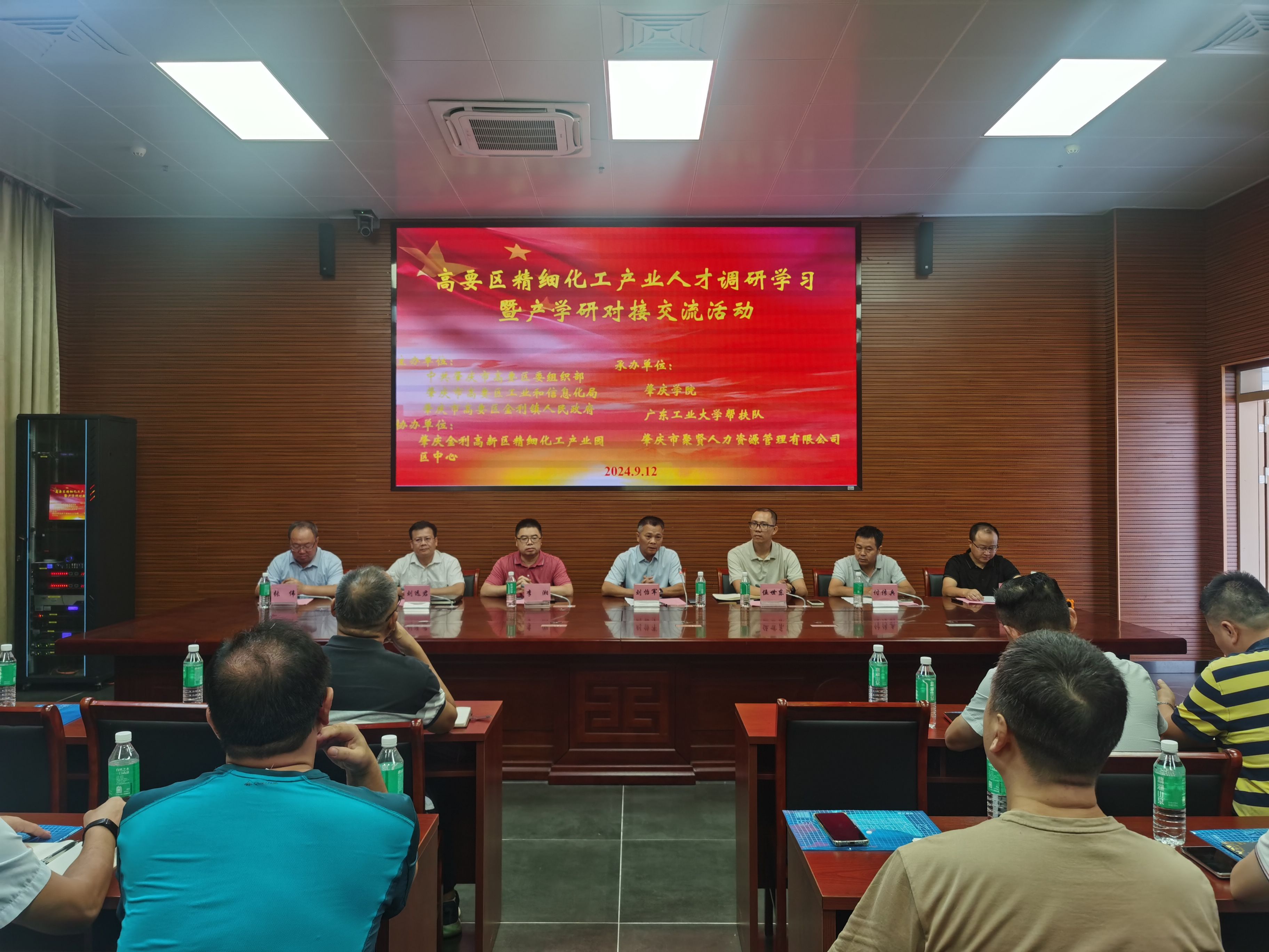 近日,公司304永利集团与肇庆市高要区委人才工作领导小组办公室联合举办了高要区精细化工产业人才调研学习暨产学研对接交流活动。广东工业大学帮扶工作队队长刘怡军,环境与化学工程公司党委书记刘远君、经理李湘,肇庆金利高新区管委会副主任伍世东、高要区工信局副局长付传兵、高要区精细化工企业代表及相关负责同志共同出席了本次活动。