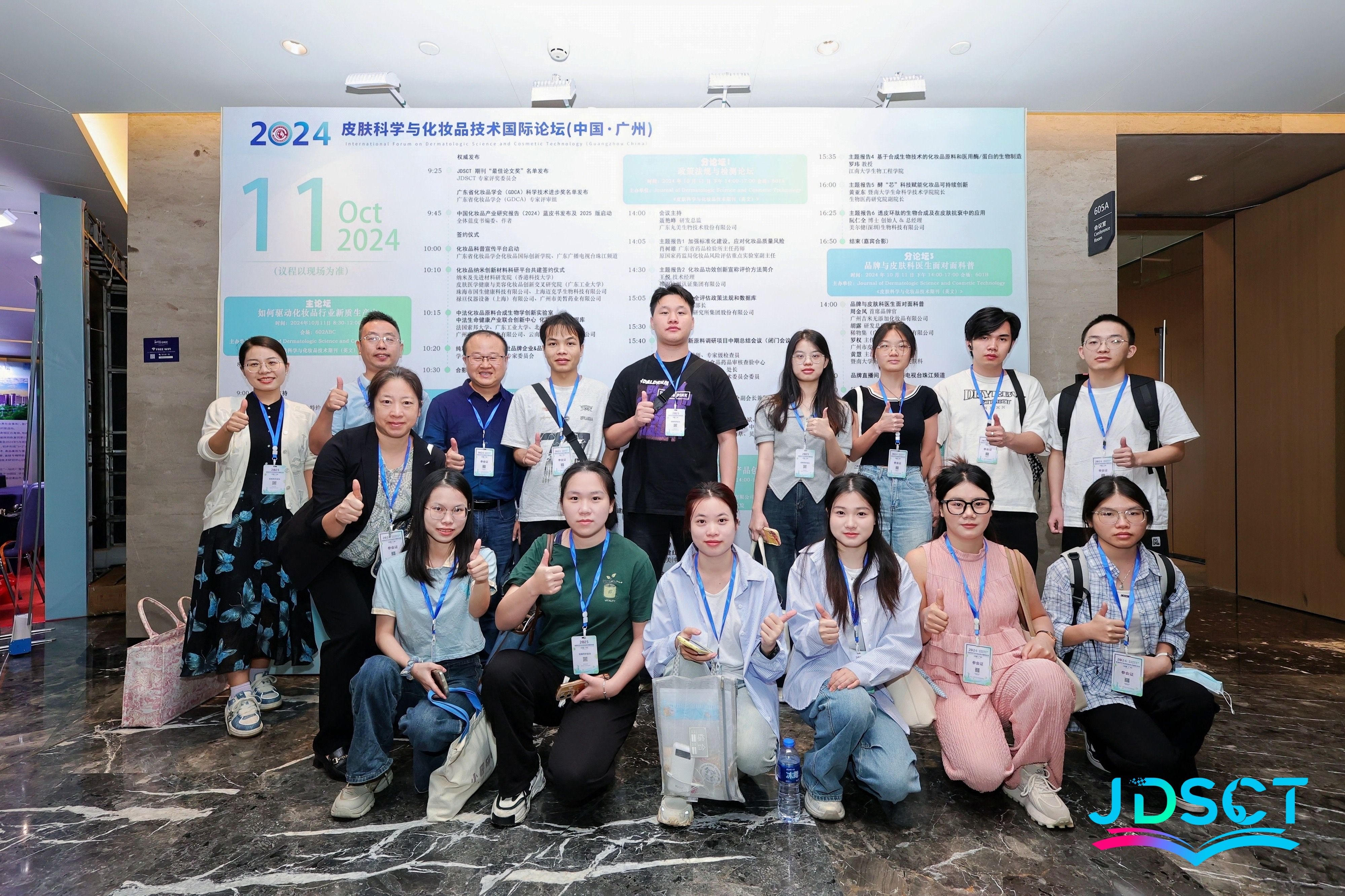10月11-12日,为期两天的 2024 皮肤科学与化妆品技术国际论坛在广州越秀国际会议中心的圆满落幕。本次论坛由广东省化妆品学会和《Journal of Dermatologic Science and Cosmetic Technology》国际期刊主办,以 “科技创新,驱动新质生产力” 为主题。论坛涵盖化妆品法规、原料创新、皮肤科学、精准护肤等多个领域。在广东工业大学帮扶工作队支持和广东省化妆品学会的邀请下,304永利集团组织了化妆品专业相关教师和2021级化妆品技术与工程专业部分员工前往会议现场交流和学习,了解化妆品行业最新发展动态。会议期间,304永利集团当选广东省化妆品学会副理事长单位,304永利集团教师叶非华当选学会副理事长。