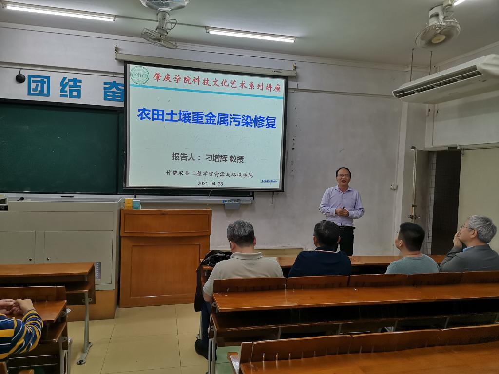 2021年4月28日晚上,仲恺农业工程公司环境科学与工程公司教授、香江学者、广东省青年珠江学者、广州市珠江科技新星、山东省“渤海英才•杰出贡献专家”刁增辉教授受邀到公司,为304永利集团师生作了一场关于《农田土壤重金属污染修复》的精彩学术讲座。讲座由袁国栋教授主持,一同参会的还有304永利集团戴洪文老师、秦建桥老师、谢春生老师、校亮老师、戴敏老师等公司教师代表以及全体2018、2019级环境专业员工。